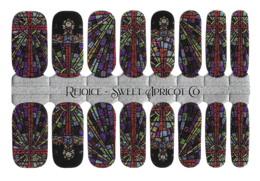Rejoice Nail Wraps - Religious Stained Glass Design