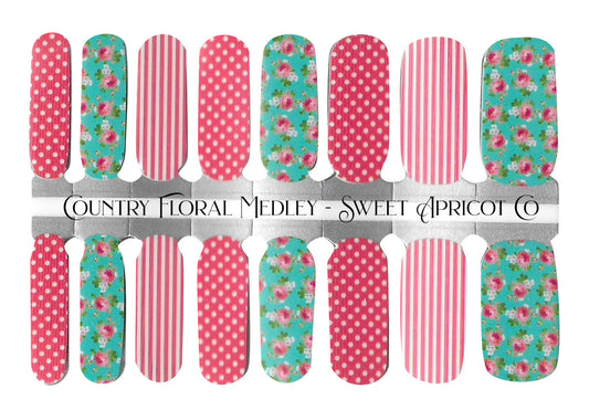 Country Floral Medley Nail Wraps - A fun mix of color and pattern